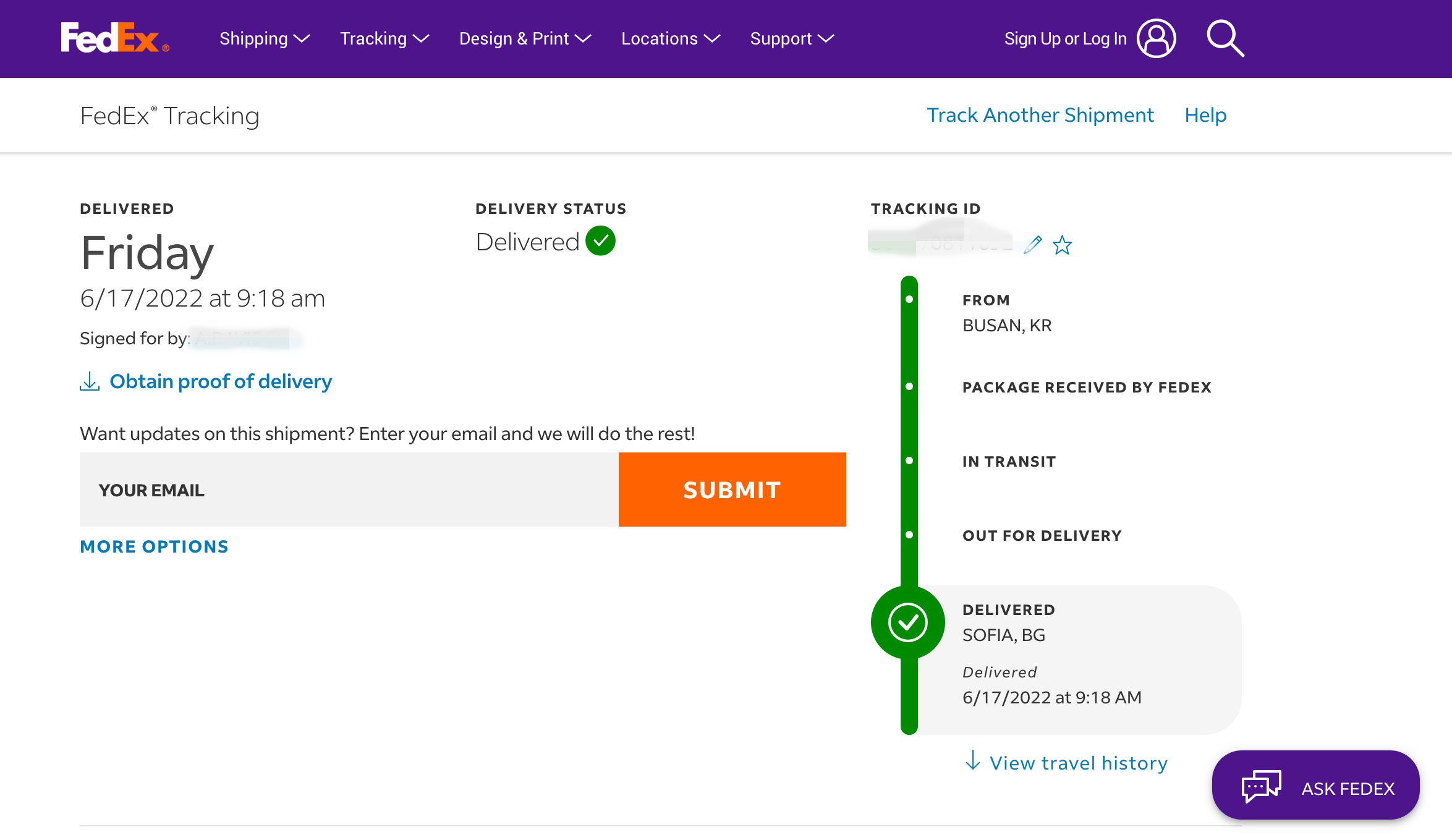 이쯤이면 어퀘이! 라는 생각으로 동생에게 배대지로 택배를 부탁하고 배대지에선 2022년 6월 8일 페덱스로 발송했다.